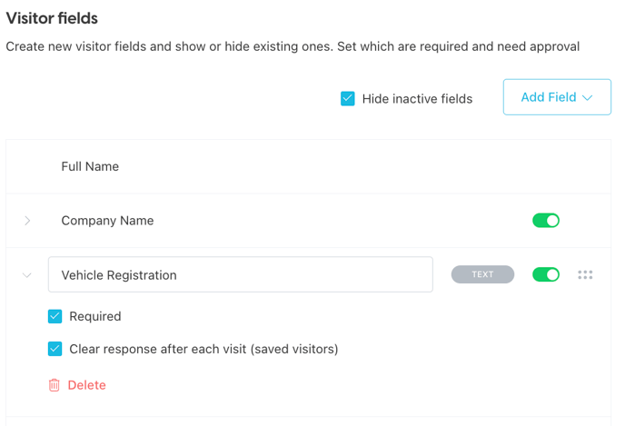 Any visitor fields and categories that have been customised within the 'Settings' > 'Visitor Settings' > 'Fields' view of the SwipedOn web dashboard will also appear within the Preregistration view.